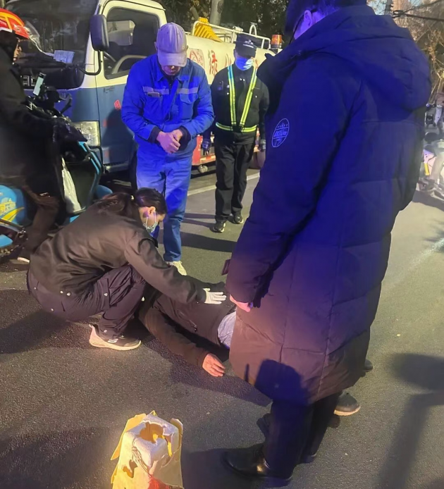 更让人觉得靠谱的是,当有路人想直接扶起老人时,他们及时制止:“不清楚伤情,盲目搬动可能更危险!” 随后耐心解释,还主动组织路人维持现场秩序,避免无关人员打扰老人。
