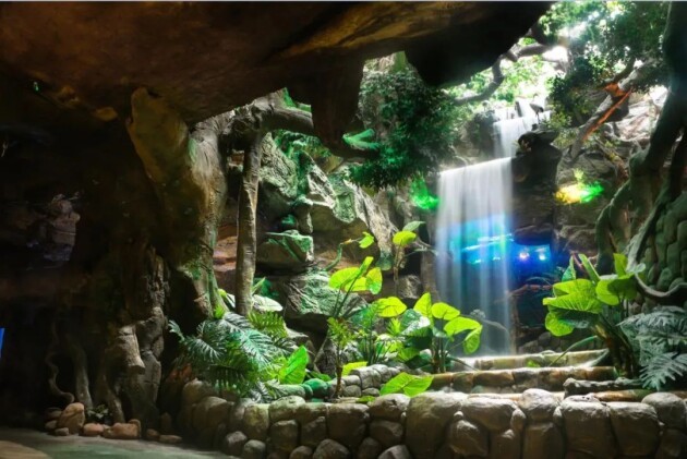 多彩贵州城极地海洋世界是贵州省首家以海洋生物观赏、海洋科普教育、海洋动物表演为主的大型海洋主题展馆,由亚马逊热带雨林区、海洋珊瑚礁鱼区、鲨鱼区、极地世界区、海底隧道区、梦幻水母区、科普展示区及“美人鱼”剧场、海豚剧场等七个展区两大剧场组成。
