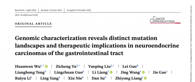 在此背景下,由吉因加携手北京协和医院病理科、河北医科大学第四医院病理科、中国医学科学院肿瘤医院病理科、首都医科大学宣武医院病理科、苏州大学附属第一医院病理科、南方医科大学南方医院病理科、华中科技大学同济医学院附属协和医院病理科、浙江省肿瘤医院病理科等多家知名医院开展了一项名为“基于国产测序仪的中国人群常见消化道恶性肿瘤大数据研究计划”的多中心项目。近日,基于项目合作探究胃肠道神经内分泌癌(GI-NEC)基因组特征和异质性的相关学术成果Genomic characterization reveals distinct mutation landscapes and therapeutic implications in neuroendocrine carcinomas of the gastrointestinal tract在线发表于Cancer Communications期刊(IF=15.283)。