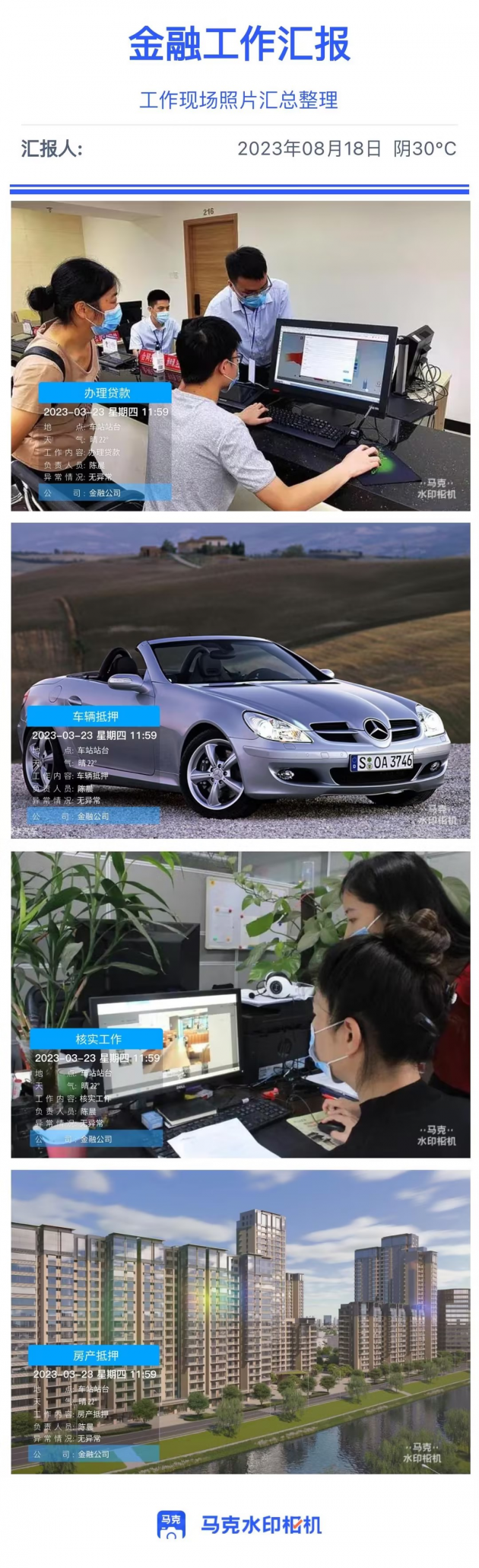 总之,通过使用马克水印相机记录评估师上门拍照的工作过程,照片管理不仅方便,而且效率高。