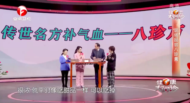 节目现场,安徽省中医药大学第一附属医院脾胃病科主任査安生教授,为嘉宾推荐了由八珍方经现代科技工艺精致而成的——八珍膏。