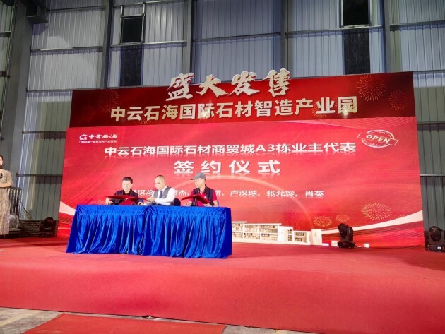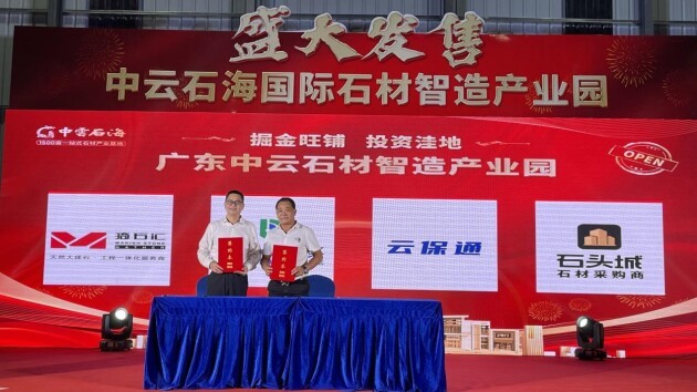 遥遥领先!非凡“智造”!石都倾力之大项目——中云石海闪耀世界,公司董事长关海棠与合营企业云浮市云保通贸、厦门市石头城集团现场签约……
