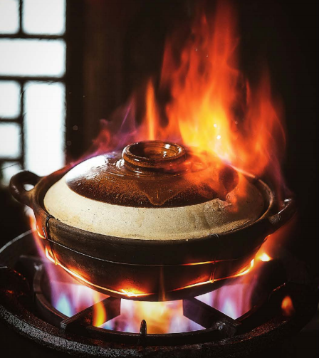 明火现煲,锅气十足 。火炯炯砂锅菜的一大特色就是明火现煲。现场烹饪的过程中,砂锅中的食材在高温下相互交融,散发出浓郁的香气,形成独特的“锅气”。这种锅气不仅让菜品味道更加鲜美,也增加了用餐的仪式感和趣味性。食客们在等待美食出锅的过程中,也能感受到那份来自传统烹饪的魅力和温度。