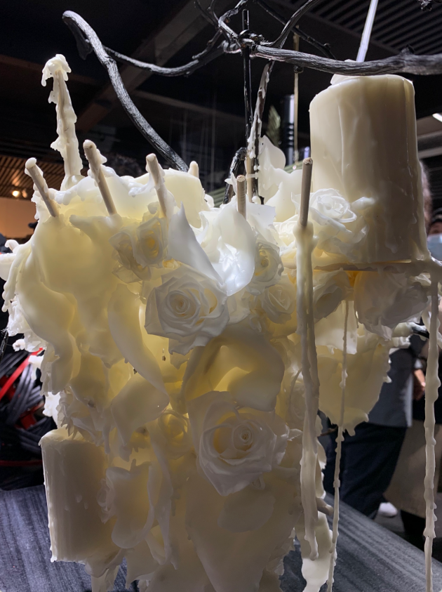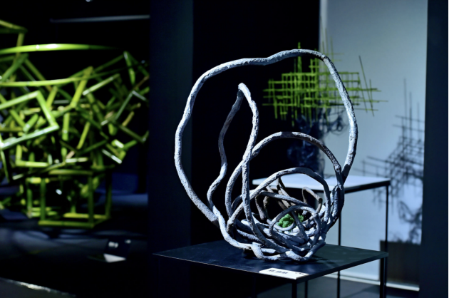 本次展览主题是《无水》,“无水”也正是2021年年初,草月本部在东京本部举办的一次非常重要的家元继位纪念活动的主题。这次我们在中国办这个主题的同期展,是因为《无水》这个概念,恰恰代表了草月流自敕使河原苍风在1927年创立以来,核心创作理念就是无水,因为,草月流区别日本传统插花流派最大的特点就是,可以不受到材料的局限,去进行综合材料的艺术造型创作,而传统插花所强调的是,使用鲜活的植物素材去进行创作,而使用鲜活的植物素材就必定要有水,而无水这个概念,恰恰是草月流携带日本花道真正迈向一个新次元的一个很重要的观点。